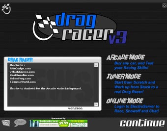 Sterowanie w Drag racer jest proste. Spacją dajemy gazu, a strzałką w górę wrzucamy następny bieg. Do wyboru mamy trzy tryby gry: zręcznościowy, tuning oraz online. W każdym z nich na początku dostajemy pewną kwotę pieniędzy, za które kupujemy wymarzony samochód, a następnie go ulepszamy.